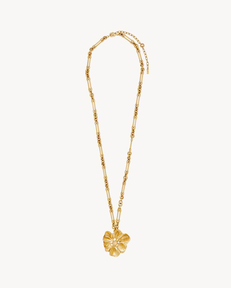 コンサバ派の20代・30代彼女や奥さんにぜひ贈ってほしいのが、「Saint Laurent(サンローラン)」のハイビスカス・ペンダント。全体的に落ち着いたトーンでまとめることが多いので、こういうゴールド&ワンポイントのネックレスがよく映えます。