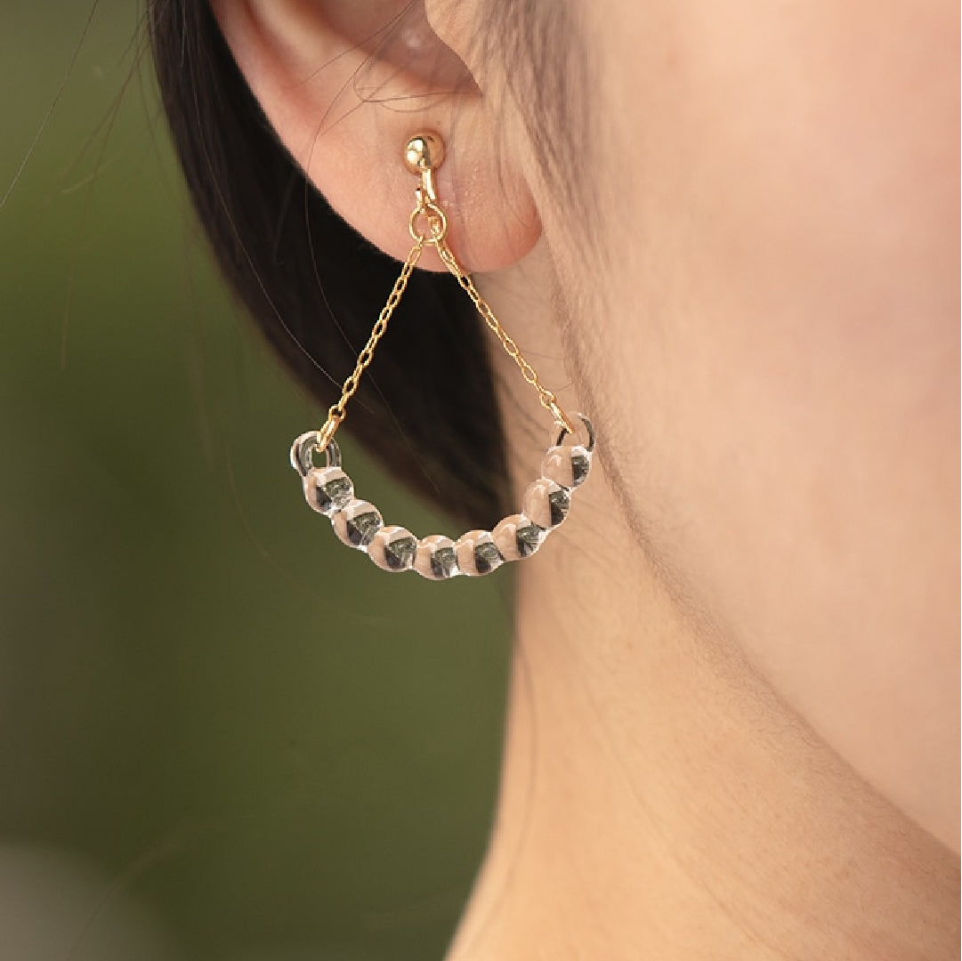 上品で透明感のあるガラスのイヤリング。揺れるたびに、ガラスの水滴がキラキラと輝きます。恋人や友達へのプレゼントにもおすすめですよ。