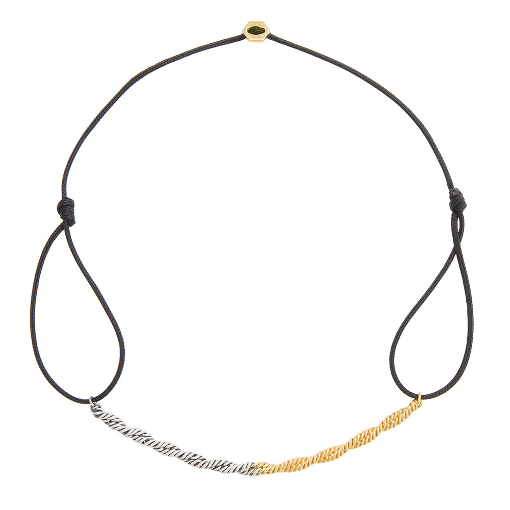 ロープ状になったチェーンとわっか状のコードを組み合わせたユニークな見た目のアンクレット。チェーンにはK18イエローゴールドとシルバーの2色を使用しているのがポイントです。コードとチェーン両方の良さを活かしたアイテムですよ。