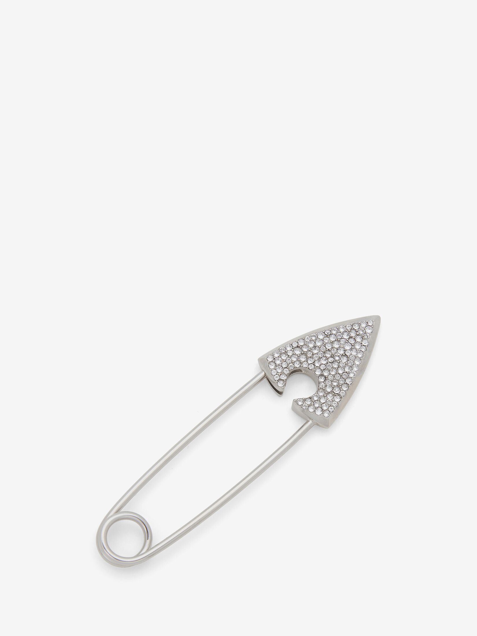 安全ピンをモチーフにしたリアルな造形のピンブローチ。アロー部分にクリアクリスタルを組み合わせ、存在感たっぷり。個性的でありながら、シックな印象に。