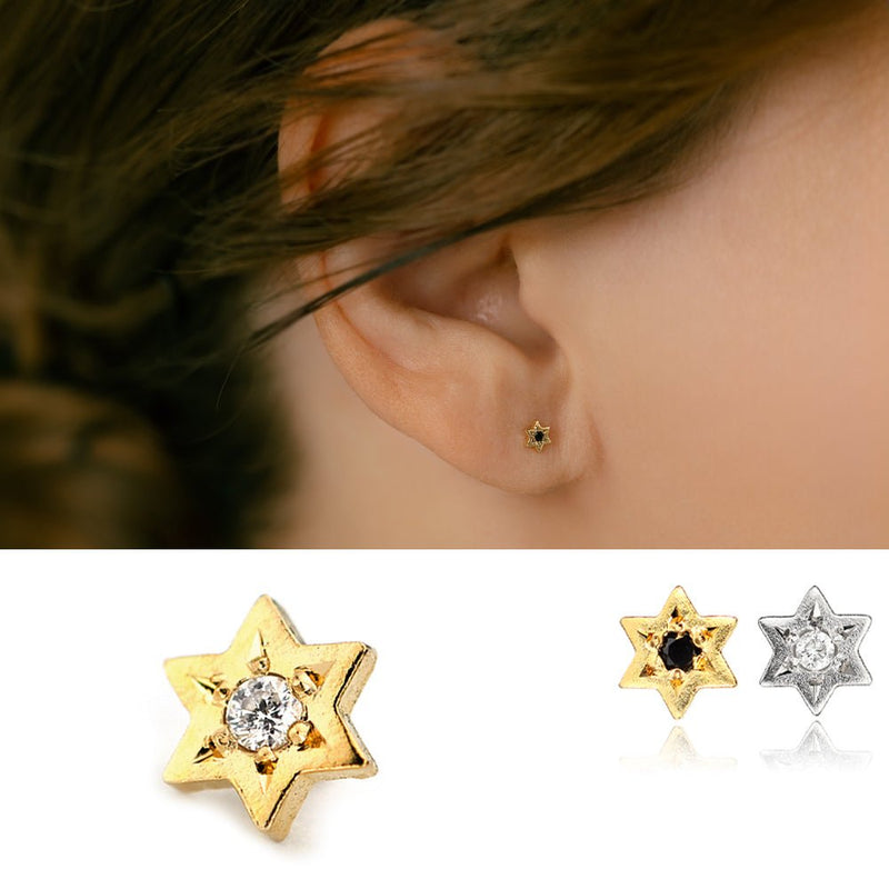 ボディピアスブランド「picollet」のトラガスピアスは、上質な18金を使用した大人のピアス。六芒星をモチーフにした中央にはダイヤモンドが一粒あしらわれており、品格の良さも感じるアイテム。指輪やネックレスのようにきちんとしたジュエリーケースで渡したい素敵な軟骨ピアスです。