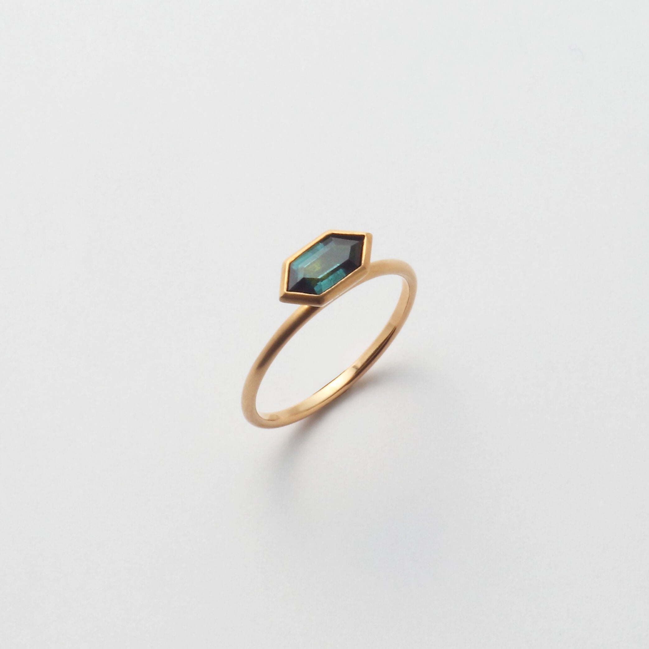 おすすめは、ゴールドにグレーグリーンのトルマリンが映えるこちらの指輪。「使いこなせない……」と敬遠していた天然石ジュエリーも、40代だからこそしっくりきます。